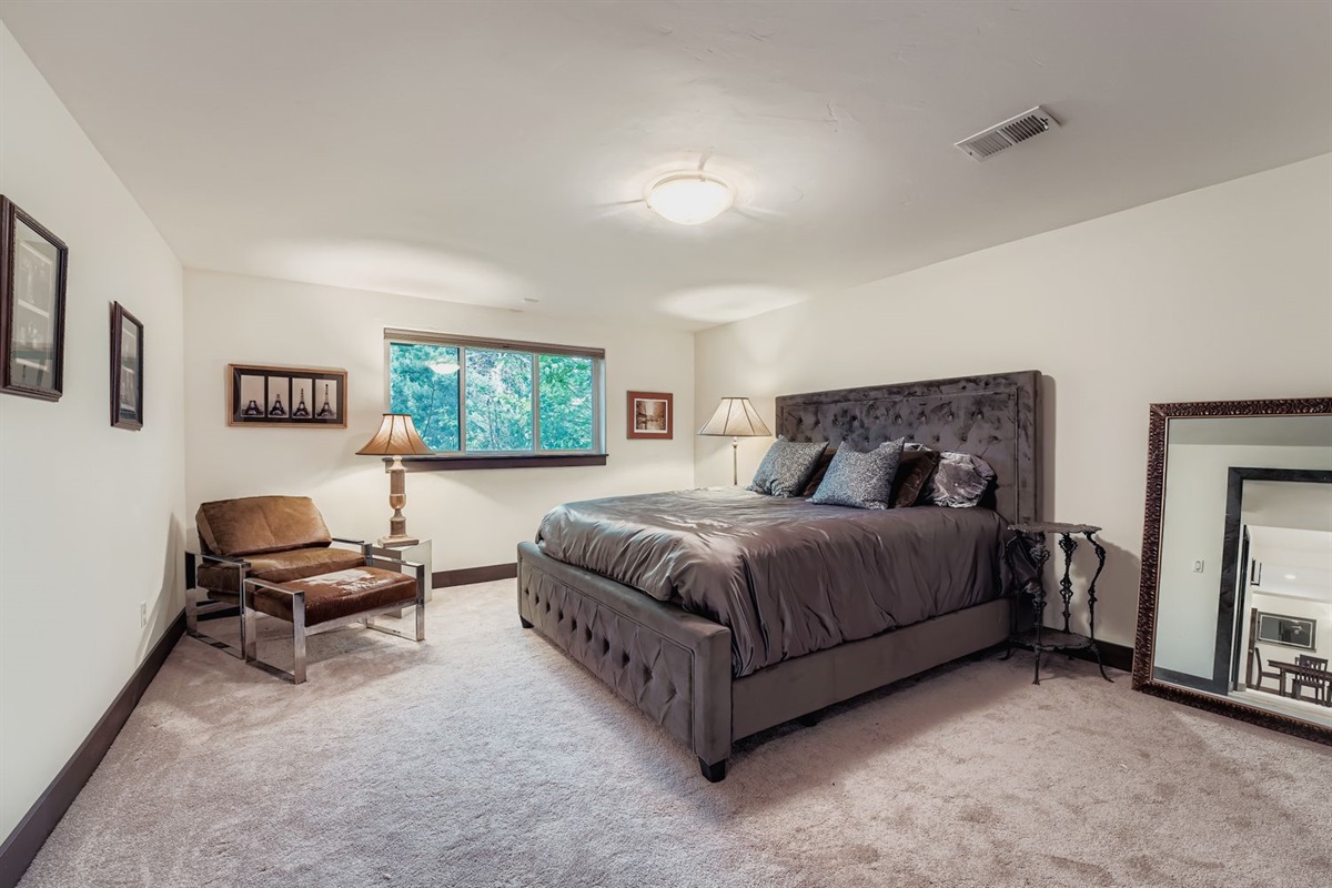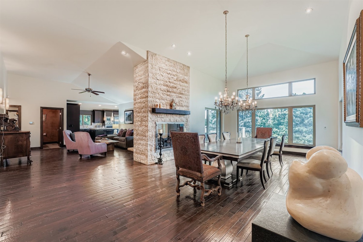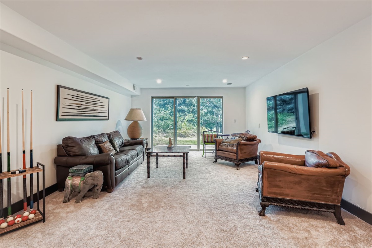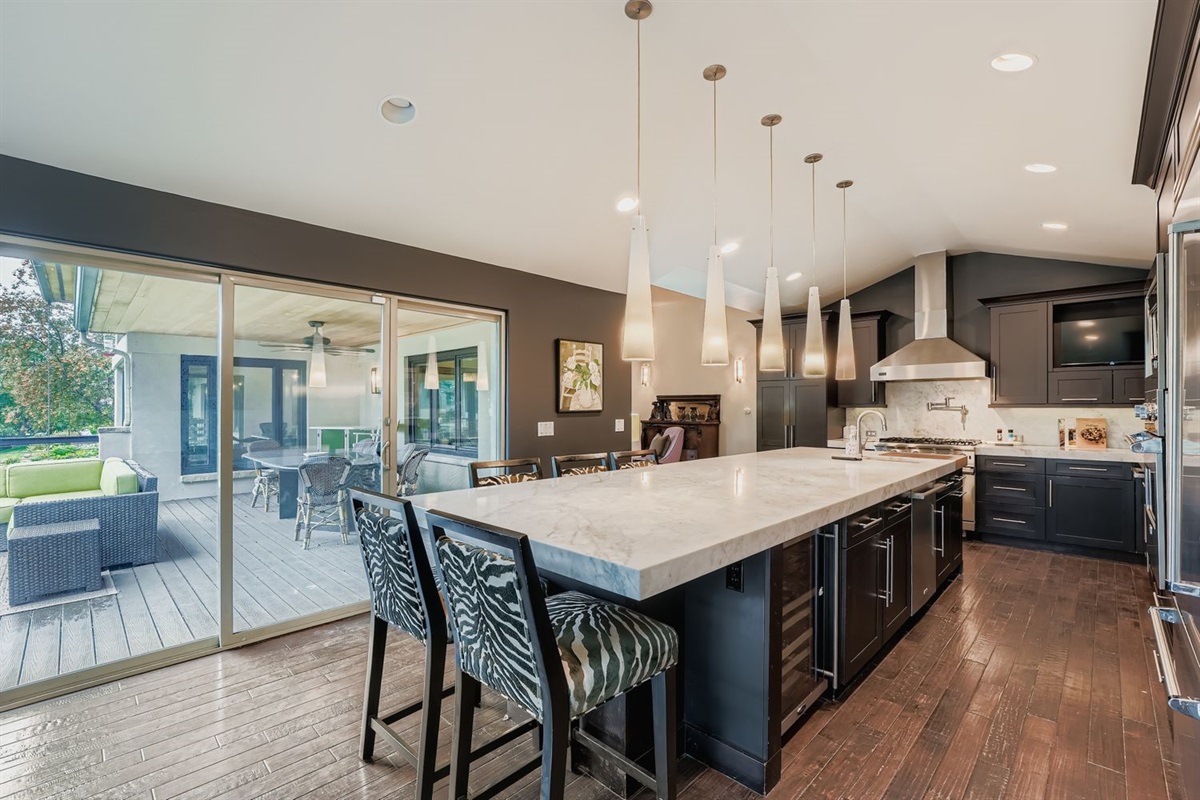 The chef's kitchen with viking appliances and oversized island flows seamlessly into a formal Living and Dining room that boasts the open living concept, ideal for hosting guests or enjoying a quiet evening in. Downstairs, an additional living room offers a relaxed setting for gatherings, movie nights, or separate entertaining space.