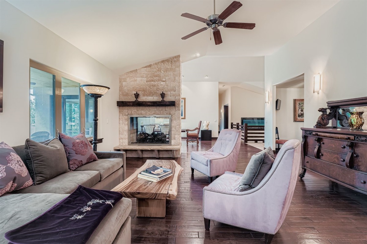 Inside, the home features 3 bedrooms and 2 private main-floor offices, designed for executives and discerning guests seeking an extended stay. The primary suite is located on the main level and includes a spa-like en suite bath. Designer finishes are found throughout, from the elegant double-sided fireplace to the carefully curated furnishings and architectural details.